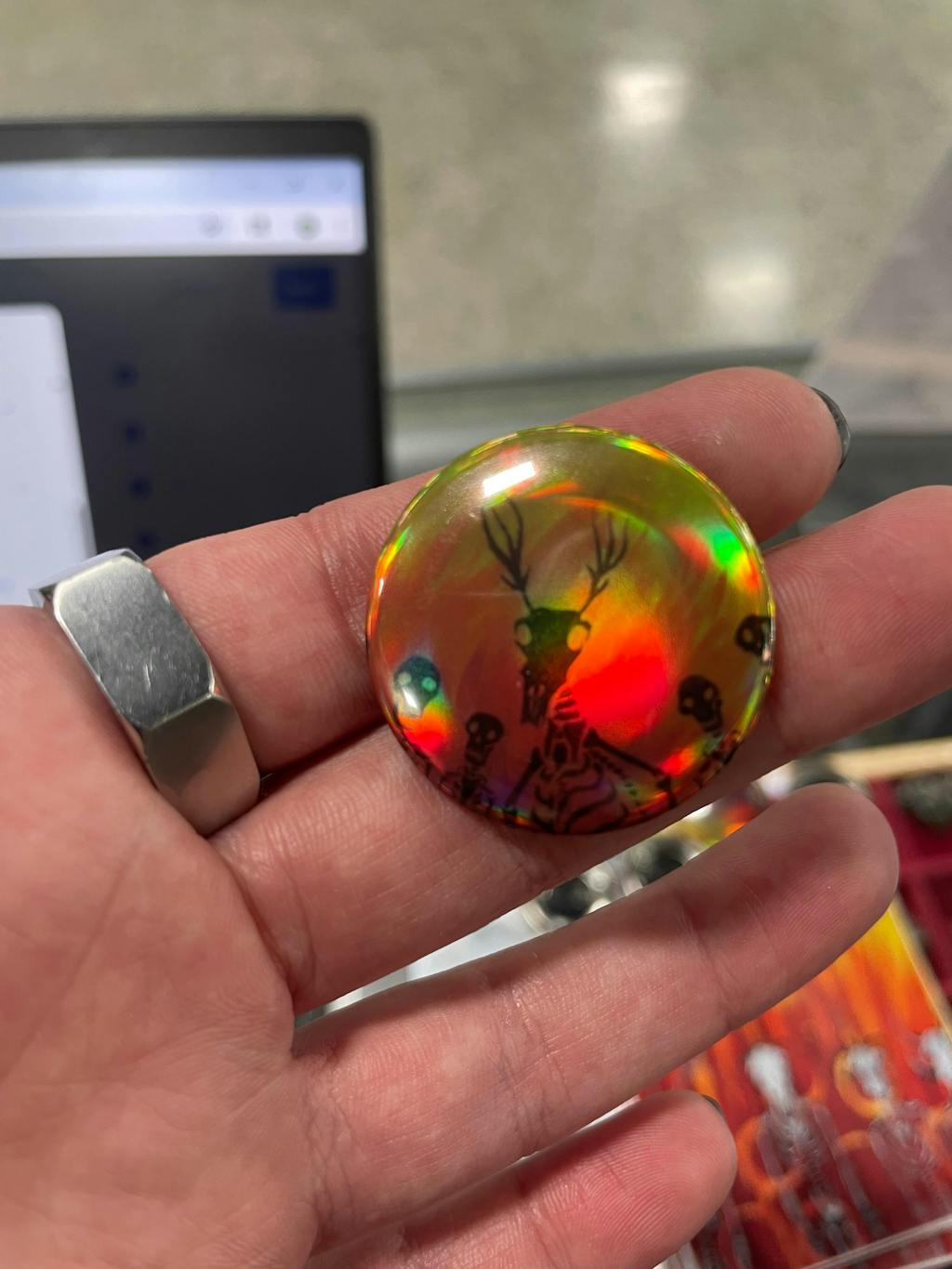 Need something with a little more pop? We got you. Slapco® buttons are also available in the same holographic material we use for our stickers.
